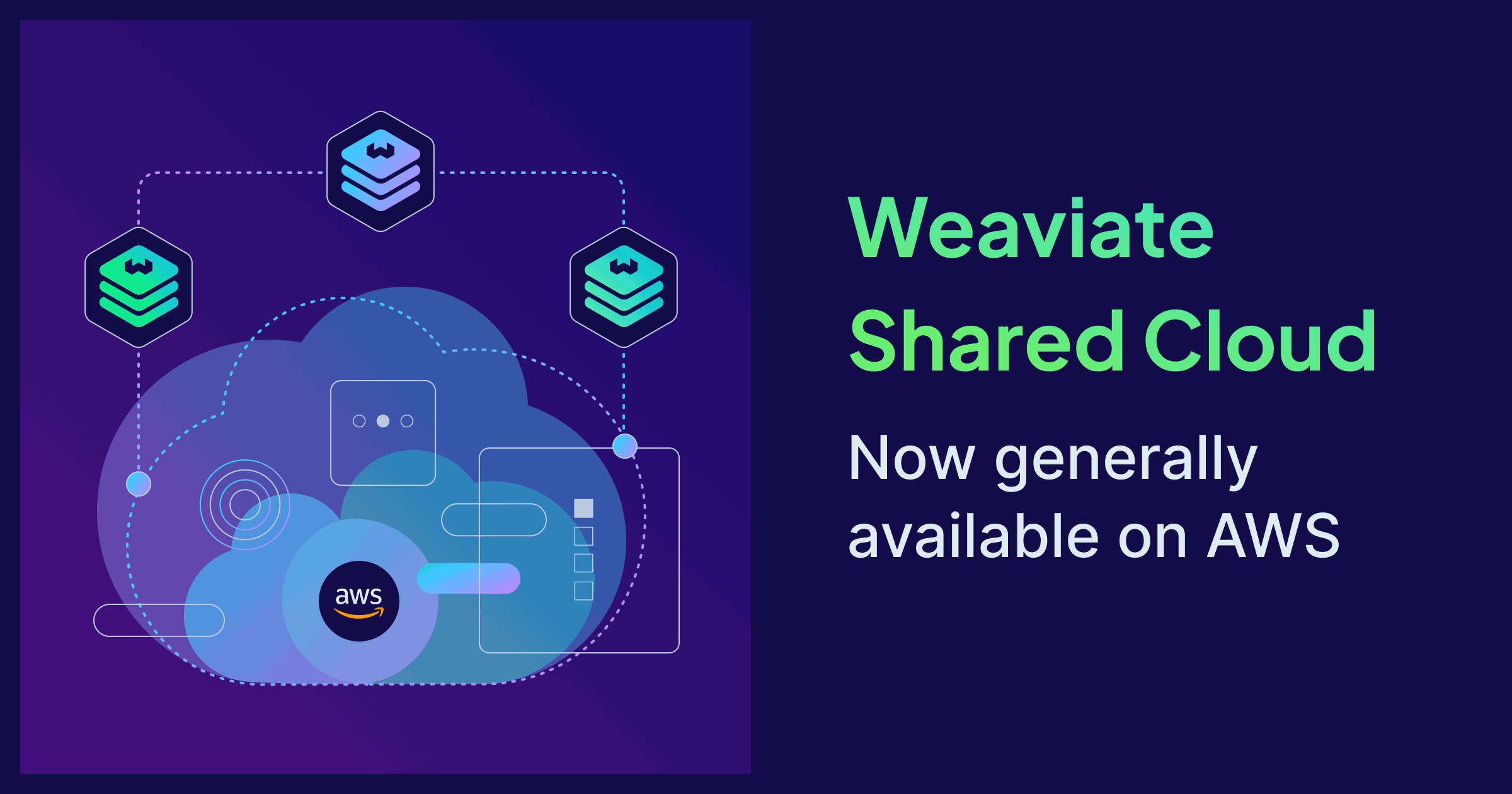 We're happy to announce that Weaviate Shared Cloud is now generally available on Amazon Web Services in US East (N. Virginia) and Europe (Frankfurt). Whether your infrastructure lives on GCP or AWS, you can now build on Weaviate's AI-native platform in the provider and region best suited for you. Select your preferred cloud provider and region under advanced configuration when creating a cluster.