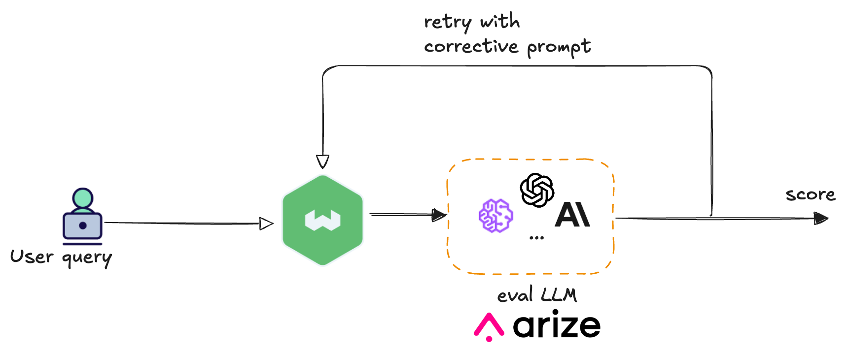 - Correction: Third, we retry the original request with the updated prompt, giving the model a second chance to produce a better output before it reaches the user.