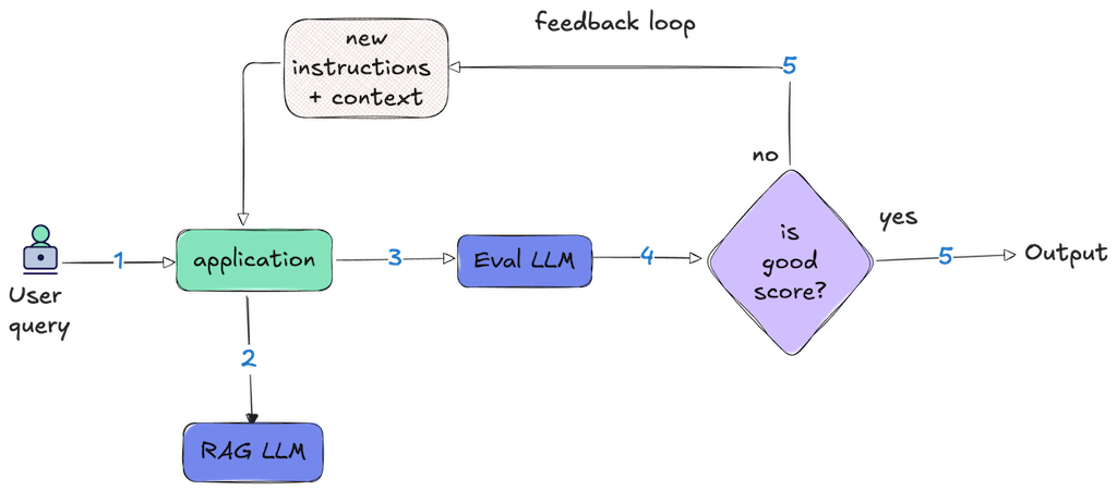Part 2 showcased a hands-on implementation of LLM-as-Judge, a pattern that utilizes one large language model (LLM) to evaluate the output generated by another LLM. The primary objective of this evaluation is to assess the quality, relevance, and overall effectiveness of the generated content, ensuring it meets our standards and operates within defined constraints. This flexible pattern can detect issues such as hallucination or incorrect responses. Once an issue is identified through evaluation, the subsequent step is to determine the appropriate response. In this blog post, we will explore a pattern where the system can dynamically learn from errors and autonomously correct itself in real time.