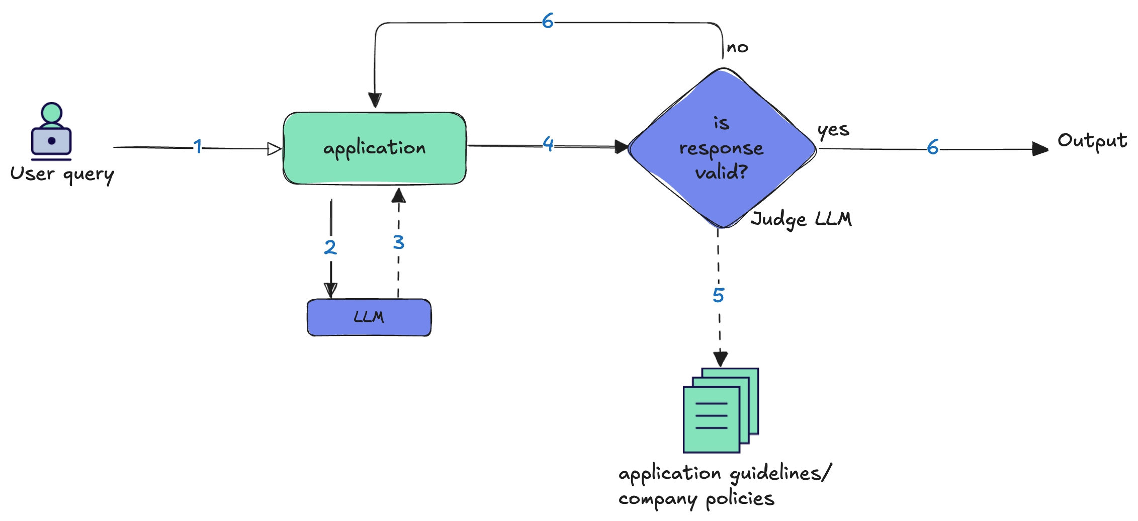 The most effective enterprise AI systems combine both capabilities to continuously improve their real-time protection mechanisms. Evaluation signals can feed into company policies/guidelines that applications can use to redact, block or escalate to a human. This is where architectural patterns become essential. They transform static rules into adaptive systems that learn from their mistakes and evolve with changing requirements. In this post, we shall explore the LLM-as-Judge pattern, powerful design for automated, real-time quality assessment.