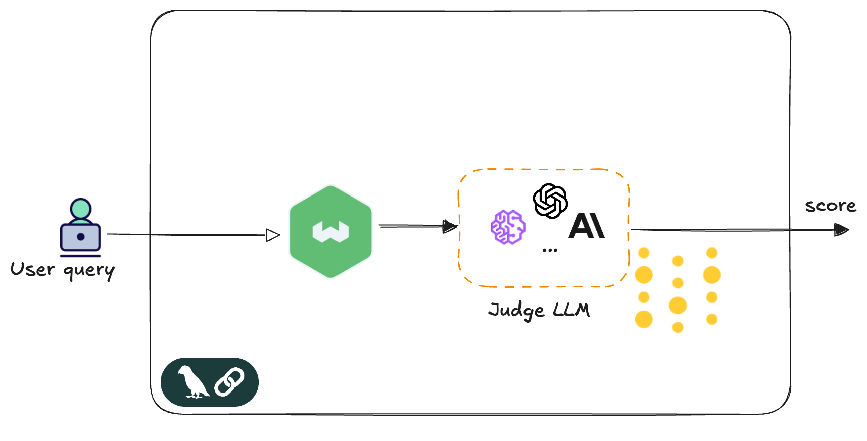 For this implementation, the system uses two main tools: LangChain and Weights & Biases (W&B). LangChain provides the composable chains that wire together the prompt template, judge model, and output parsing into a clean, testable pipeline. Think of it as an assembly line that ensures everything flows smoothly from input to output. Weights & Biases handles evaluation tracking and observability. It records every evaluation, measures how well the judge performs over time, and provides detailed logs of what happened during each decision. Together, these tools provide the flexibility to experiment with different evaluation approaches while maintaining close visibility into how well everything performs in production.